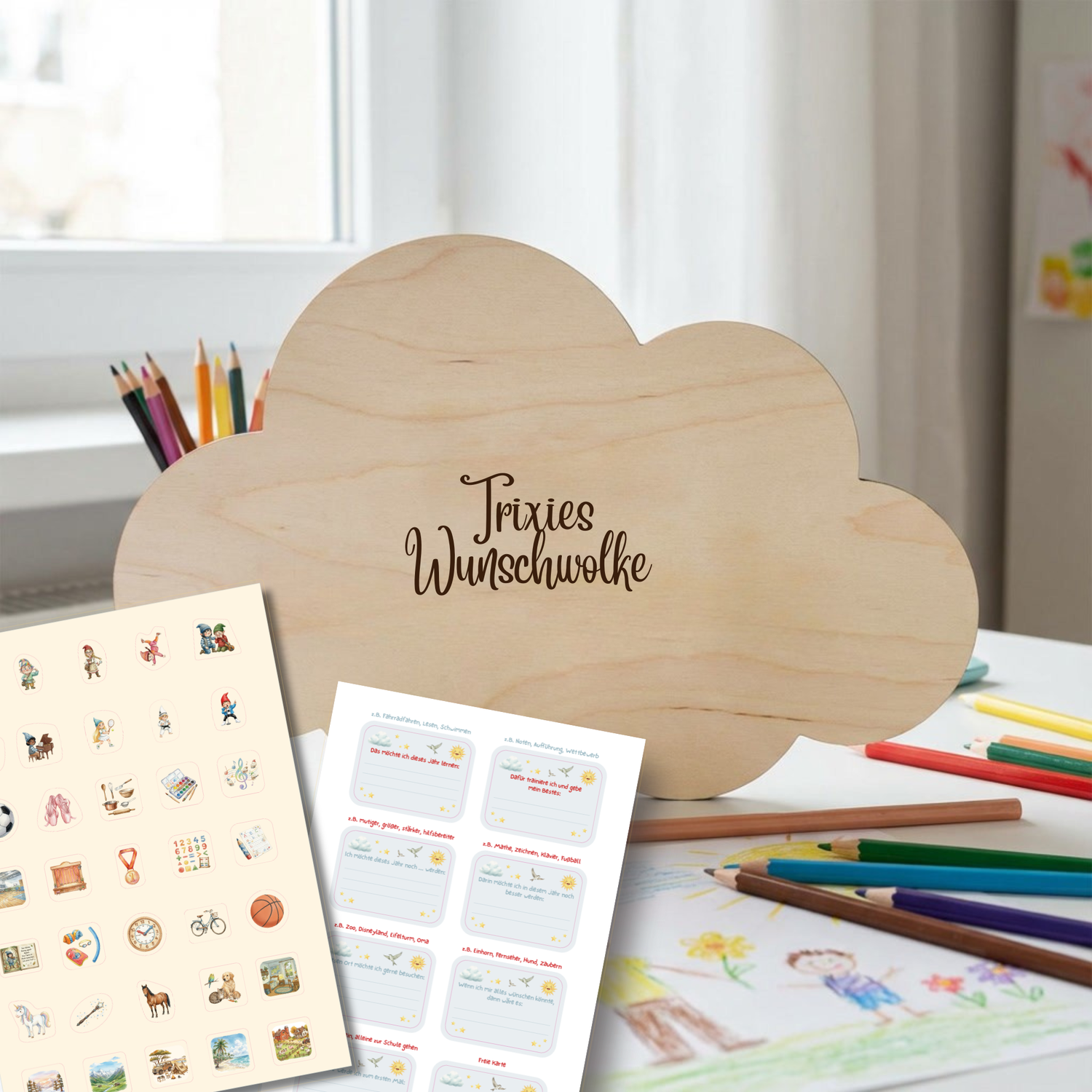 Die Wichtel-Wunsch-Wolke ist wie ein Visionboard für das neue Jahr. Aber natürlich kindgerecht.