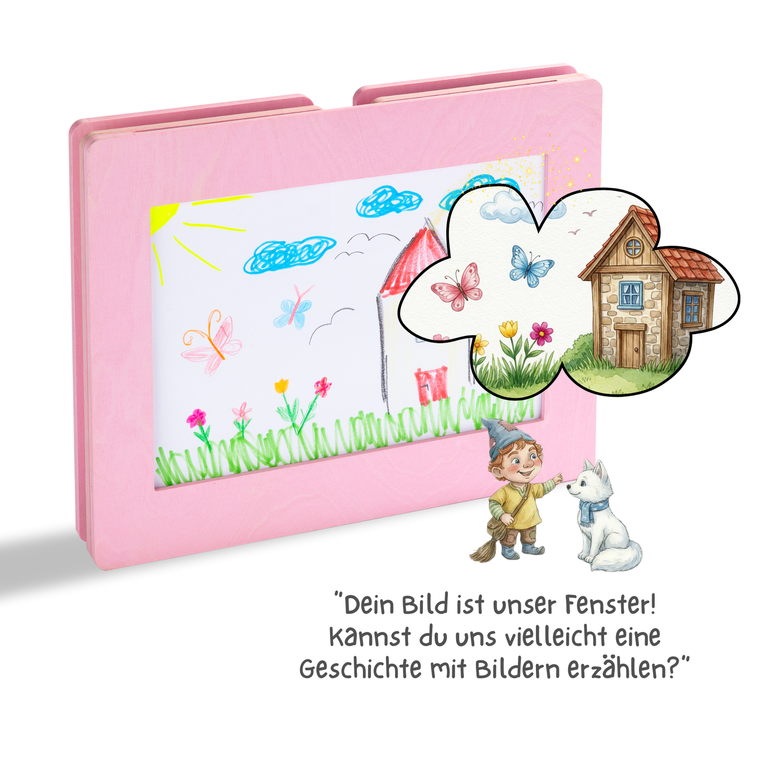 Mit dem Wichtel-Wunder-Fenster lädt der Wichtel die Kinder zum Geschichten erzählen und malen ein.
