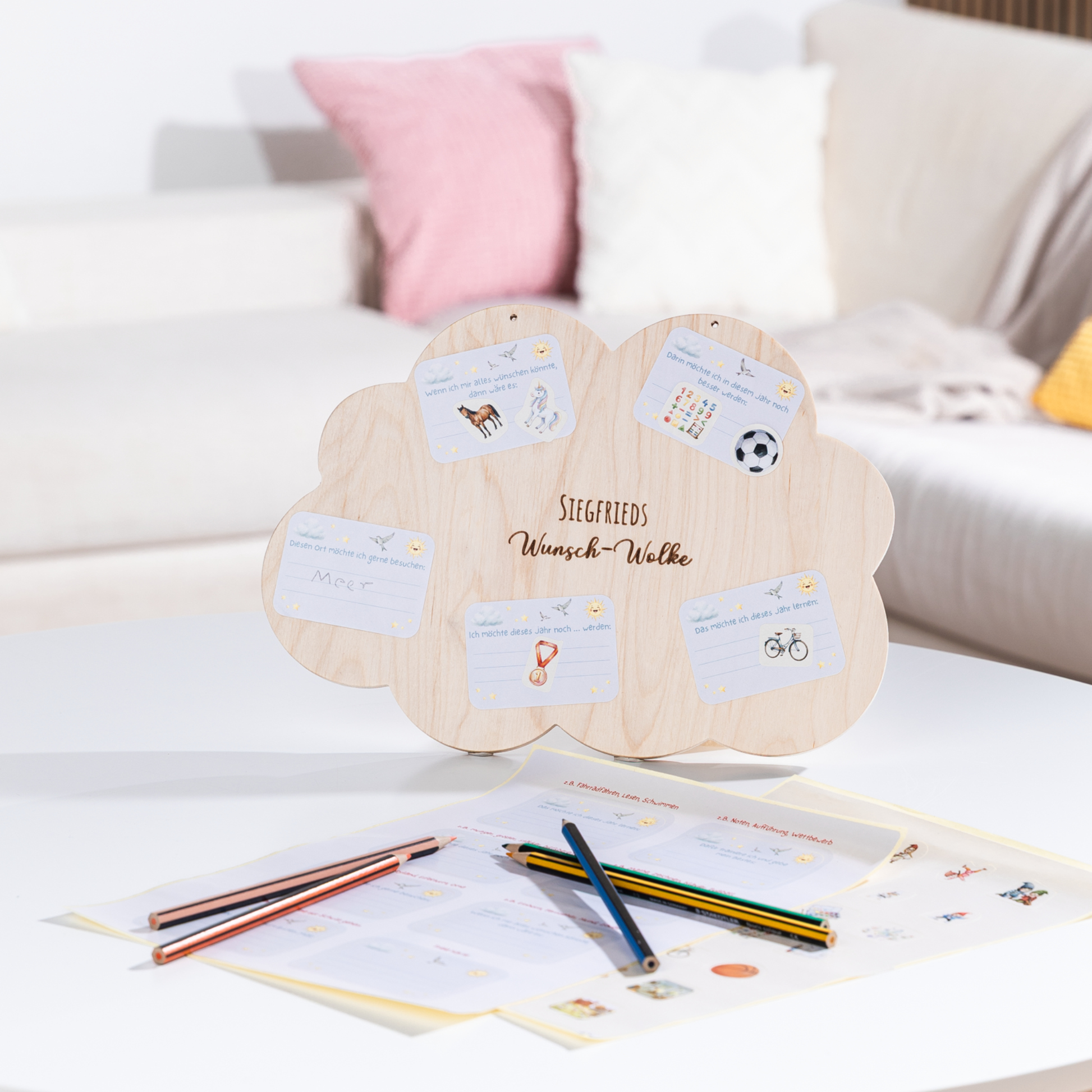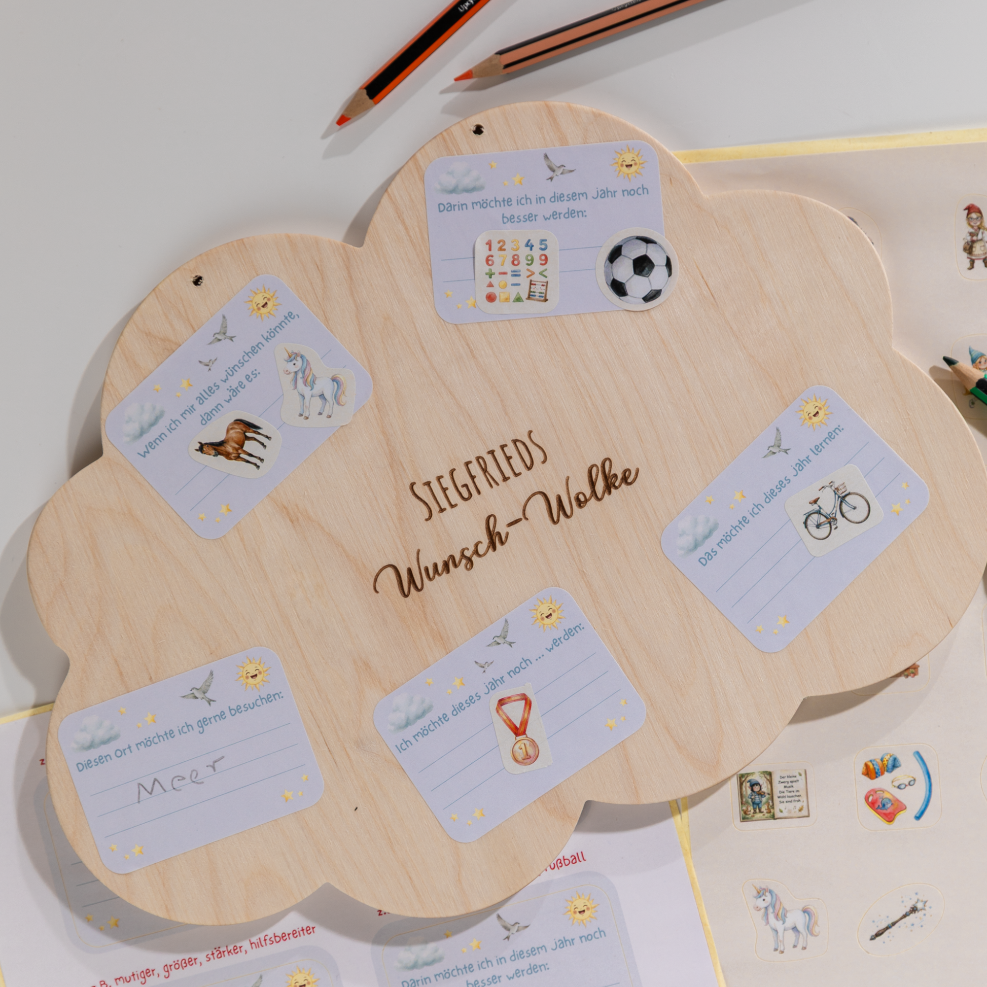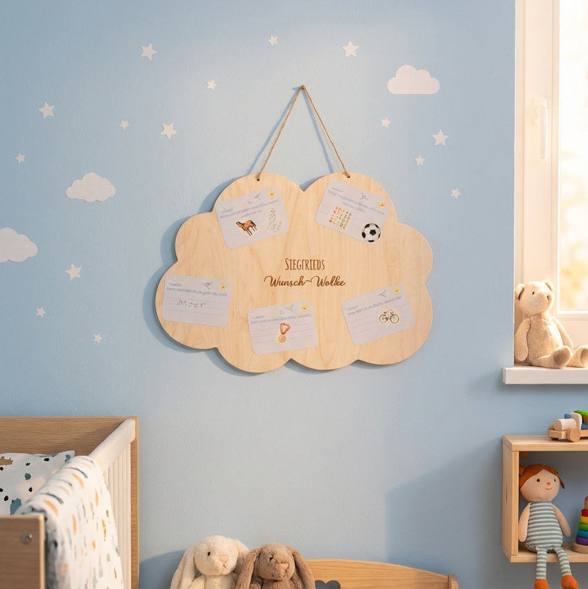 - Personalisierte Wichtel-Wunsch-Wolke aus Holz zum Aufhängen